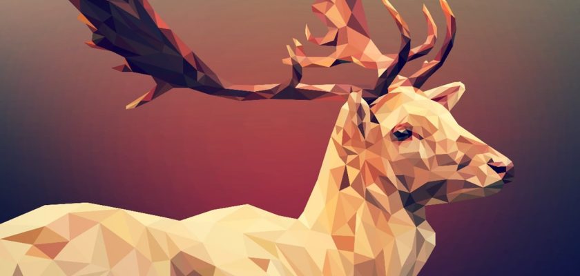 This hand drawn polygon deer head is made up of 2 separate elements – a wireframe style outline and a solid shape.